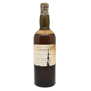 Nous vous proposons ici une véritable pièce rare, une bouteille de collection comme il est encore rare de trouver : une bouteille de whisky écossais de la marque Black & White mise en marché dans l'entre deux guerres entre 1928 et 1932. L'étiquette accolé sur la bouteille nous permet de dater précisement cette période. Le whisky présent dans cette bouteille est est donc antérieur à 1925.