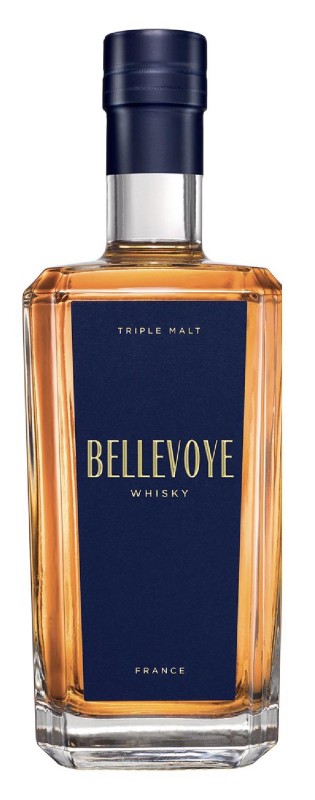 Al final de una cata a ciegas sin concesiones llevada a cabo sobre unos cuarenta whiskies franceses, tres Single Malts se han consolidado como los mejores, dignos de componer el coupage de Bellevoye Bleu. Provienen de excelentes destilerías ubicadas en el Norte, Alsacia y Charente, donde tuvo lugar una crianza primaria durante seis años.