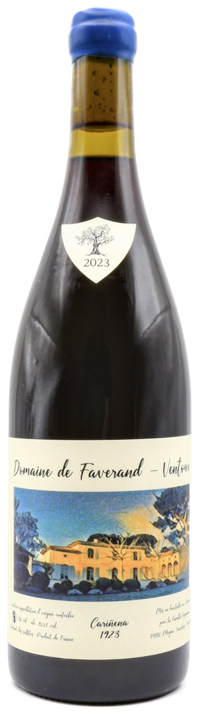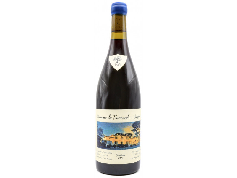 Domaine de Faverand ligger i Mazan, ved foden af Mont Ventoux i den sydlige del af Rhône-dalen, et vinområde præget af et middelhavsklima og jordbund, der blander sand, ler og kalksten. Denne unge ejendom på omkring fem hektar har hurtigt gjort sig bemærket for sin håndværksmæssige tilgang og sin vilje til at producere præcise og udtryksfulde vine, dybt forankret i deres terroir. Vinmarken er plantet på sandede og ler-kalkholdige parceller, der fremmer naturlig dræning og tilfører finesse og friskhed til vinene trods det varme provencalske klima. Vinavlen prioriterer respekt for miljøet og biodiversitet, med blandt andet agroforestryiniciativer, der har til formål at styrke jordens naturlige balance. Ejendommen arbejder primært med traditionelle druesorter fra det sydlige Rhône som Grenache og Carignan, ofte fra gamle vinstokke med lavt udbytte. Denne tilgang gør det muligt at opnå koncentrerede, men elegante vine, hvor frugten forbliver i centrum af udtrykket. Cuvéen Carinena 2023 følger denne filosofi og repræsenterer en af ejendommens mest særprægede cuvéer.