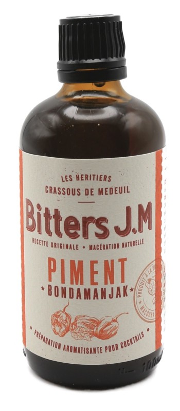 Le Bitters J.M – Piment Bondamanjak, titrant à 46,1 % vol., est élaboré à partir de rhum agricole et du célèbre piment Bondamanjak, variété iconique des Antilles réputée pour sa puissance aromatique et son intensité épicée. Ce bitter artisanal marie la vivacité du piment à la rondeur du rhum agricole, pour offrir un concentré de caractère pensé pour la mixologie contemporaine.