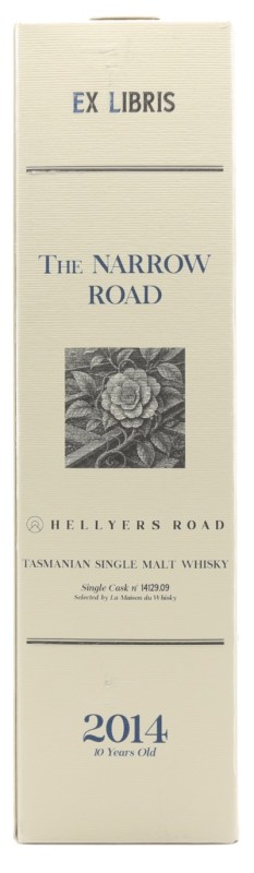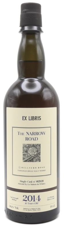 Ex Libris – Hellyers Road 10 Años 2014 “The Narrow Road”, seleccionado por Clos des Spiritueux y embotellado con un 58,10 % de alcohol por volumen, destaca como una edición limitada excepcional, codiciada por su intensidad, complejidad y rareza. Este single cask con la graduación alcohólica necesaria, envejecido durante diez años en barricas de roble americano, revela toda la potencia original de la malta, así como una paleta aromática rica y profunda. El nombre “The Narrow Road” evoca el rigor de la selección y la trayectoria única de esta cuvée, simbolizando los altos estándares de calidad de Ex Libris y su pasión por los espirituosos excepcionales, intensos y únicos.