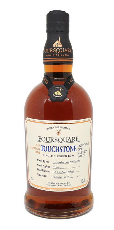 Touchstone appartient à la prestigieuse gamme Exceptional Casks de Foursquare. Cet assemblage rare marie subtilement des rhums vieux distillés en pot still et en colonne, bénéficiant d’un vieillissement de 14 ans dans un climat tropical particulièrement exigeant. Le rhum mûrit patiemment en fûts d'ex-Bourbon et d'ex-Cognac, conférant à ce spiritueux des arômes riches, une profondeur unique et une complexité remarquable, qui raviront les amateurs les plus passionnés de rhum d’exception.